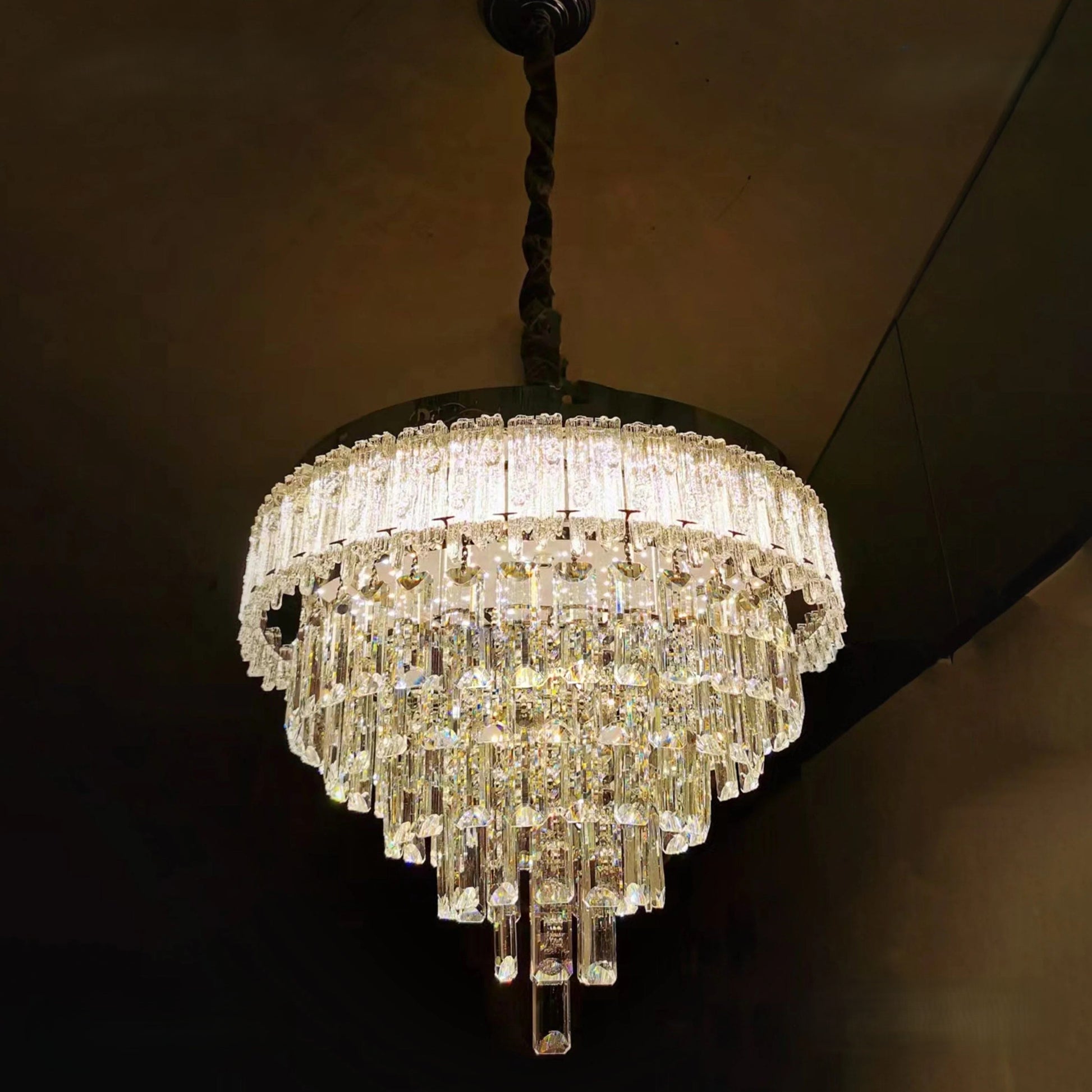 The GLOW OPULENT CRYSTAL CHANDELIER uses an in-built LED light that has three color options: warm, white, and daylight. It is also fully dimmable, allowing you to control the brightness to create the perfect ambiance.